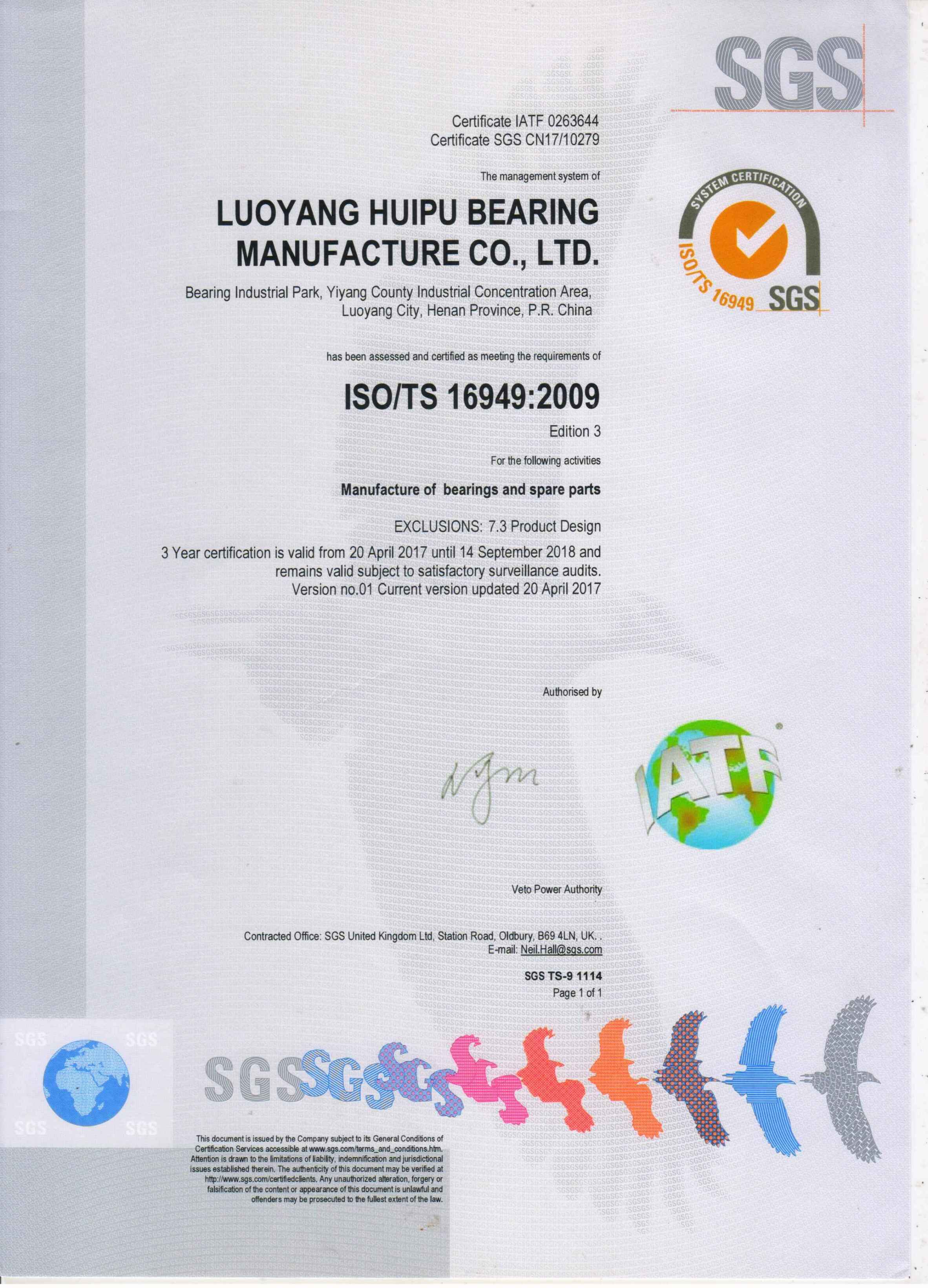 2017年4月匯普軸承順利通過TS16949質(zhì)量體系認證
