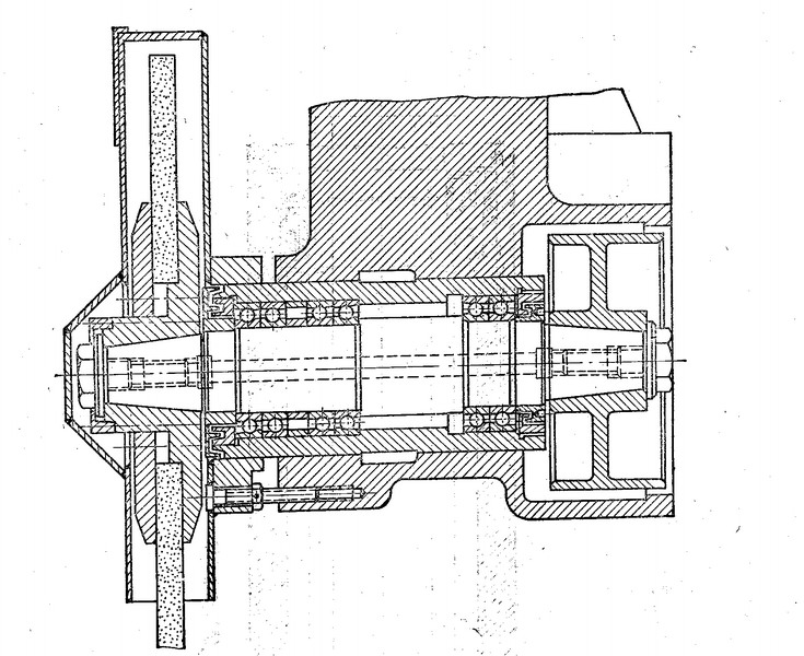 所示前支承采用雙列圓錐滾子軸承,承受徑向載荷和軸向載荷,后支承采用單列圓錐滾子軸承,這種配置可承受重載荷和較強(qiáng)的動(dòng)載荷,安裝與調(diào)整性能好,但主軸轉(zhuǎn)速和精度的提高受到限制,適用于中等精度,低速與重載荷的數(shù)控機(jī)床主軸。
